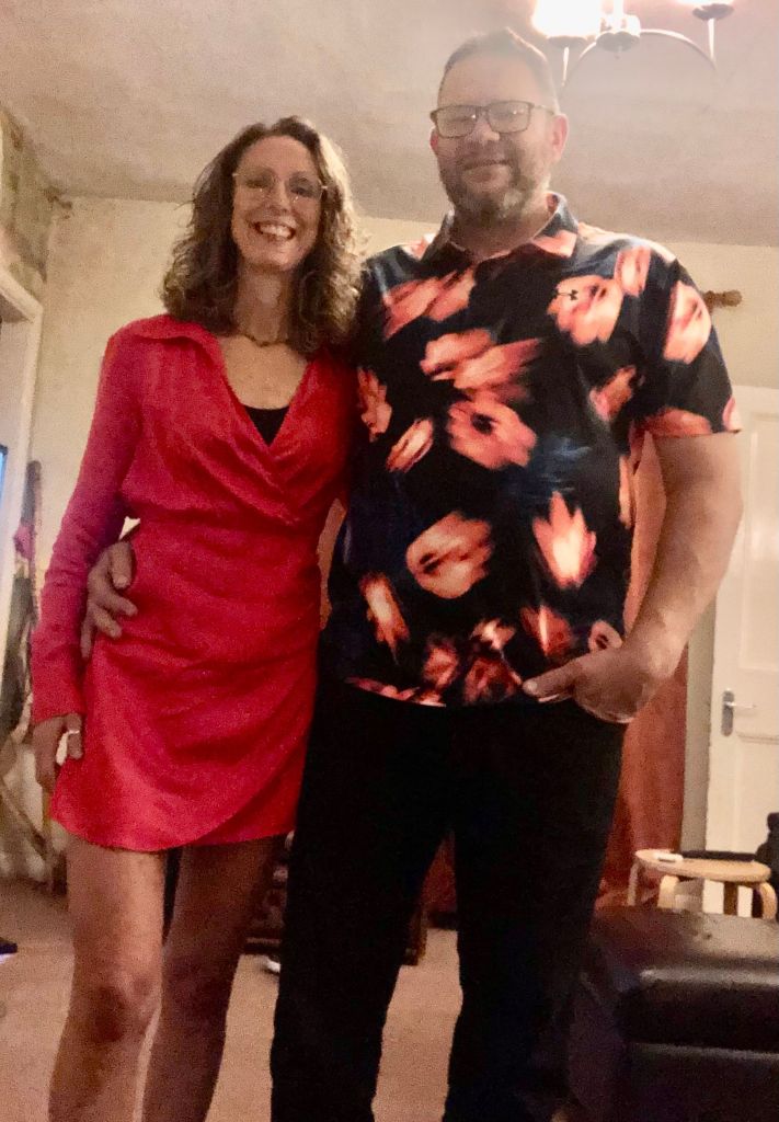 Saturday evening – M3 tri club awards night. Boobarella made her debut on the party scene. I had a super slinky red satin dress and Boobarella looked pretty good !! :-))) Chris was looking fabulous in his quiet, understated shirt :-)))