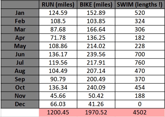 My cycling total will make cyclists and proper triathletes laugh because its pretty rubbish hahaha, but I’m quite happy with my run total considering the various up and downs in 2022. My swimming total has just been a token effort this year 😆