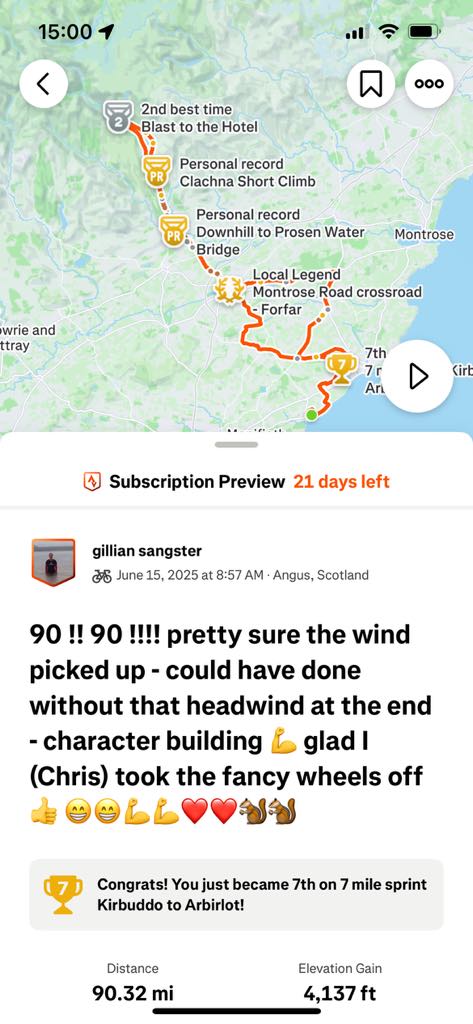 Cycling is probably my weakest part – physically and mentally. I’m still struggling with the thought of spending such a long time on the bike – hours, and hours, and hours and…..yeh, a lot of time !! Really, a lot of time. So my cycles have been a bit of training my brain to accept that fact, and not spiral into a pit of ‘oh my god – I’ve got so far / so long still to go’ doom !! definiately still a work in progress 🤔 BUT I mean…I have had a succession of ‘longest rides EVER’ !! which is pretty awesome, and I have definately enjoyed large parts of them – even really enjoyed parts :-))