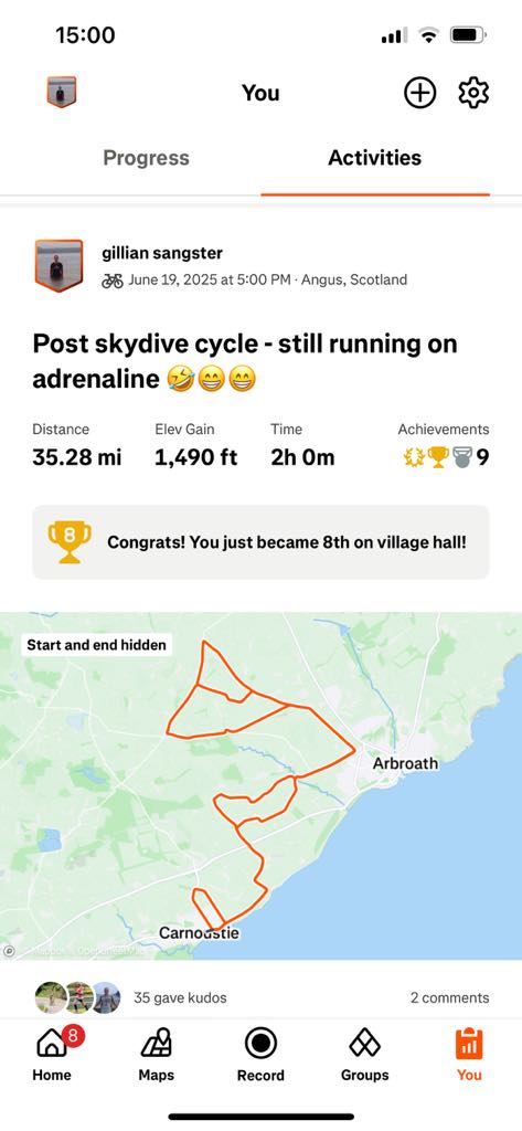 Since we are talking about cancer – the fundraiser skydive for Maggies centre, I was doing with friends I met at a support group run by Maggies – was postoned twice 😥 BUT we had a perfect day on Thursday and we did it – we did it – we did it 😁😁😁😁😁 honestly, it was the best thing – such an incredible buzz – I so loved it, and it’s totally impossible to describe. All three of us have been on a high since then (pun !). And thank you so much for all the donations, between the three of us we have raised over £4000 !! awesome :-)))) If you get a chance to do a sky dive, DO IT !!